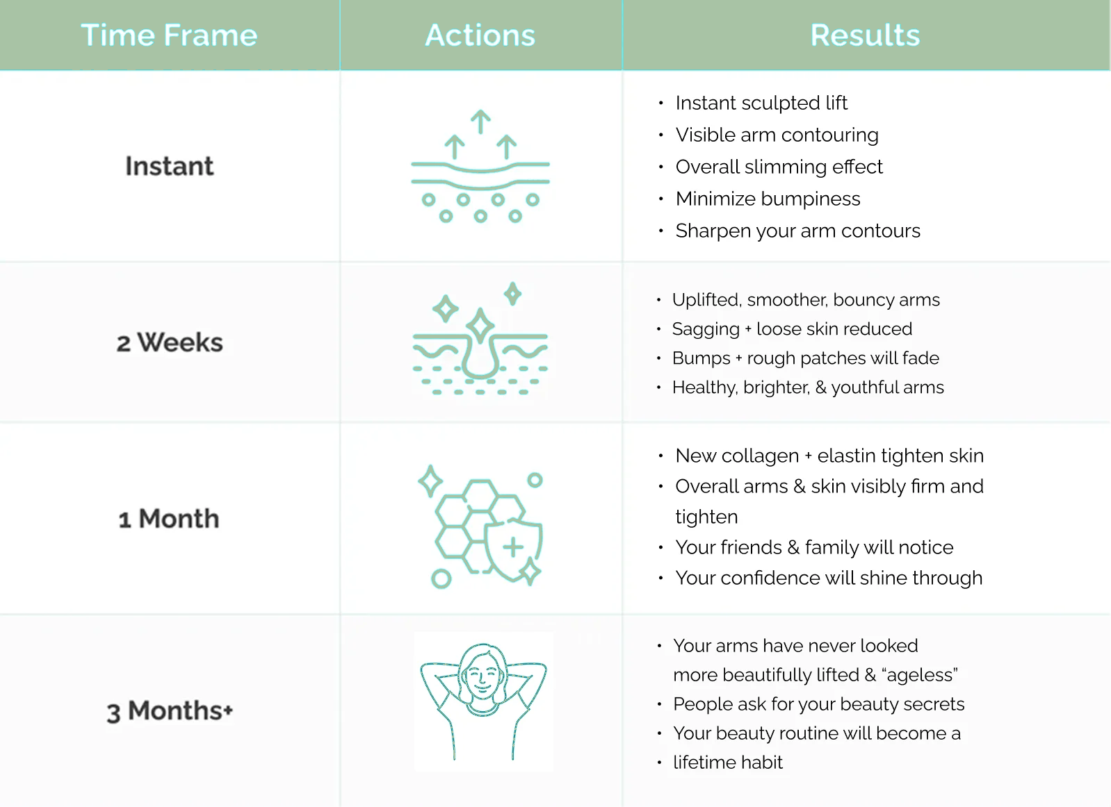 Use it consistently. Feel the skin get tighter. See the texture get smoother. Fall in love with your arms again.